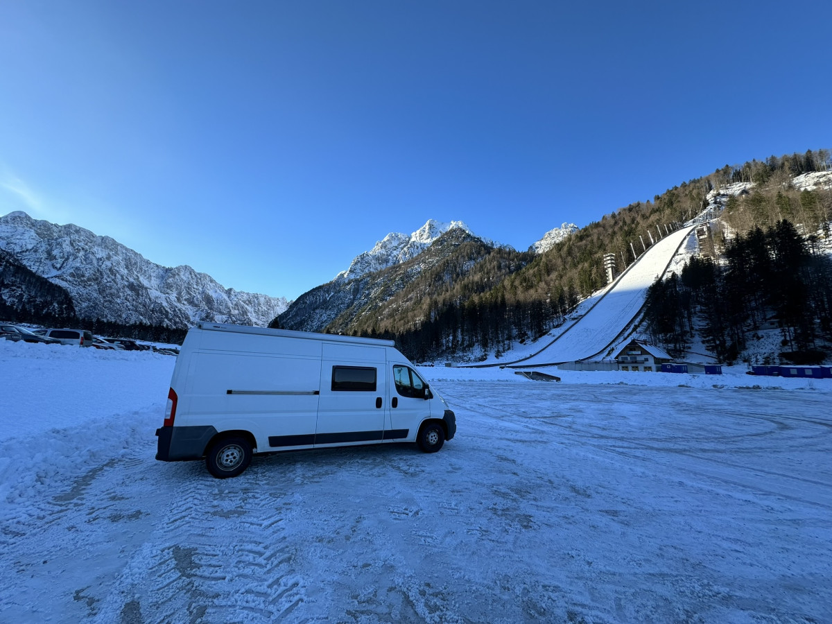 Avtodom ne uporabljamo samo za toplejše dni. Pozimi je postal naš idealen spremljevalec za smučarske vikende. Spimo tik ob smučišču, zjutraj eden skoči na smučanje, drug pa gre z Jonom malce naokoli ali se sanka, ko je čas za spanje, se zamenjava.