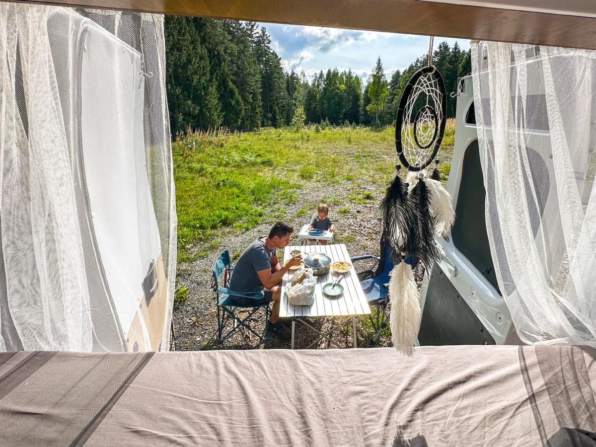 V avtodomu imamo majhno kuhinjo, ki nama omogoča pripravo domačih, enostavnih obrokov. Hrana je pogosto podobna kot doma – testenine, juhe, popečena zelenjava, kašice. Prednost je, da nismo odvisni od restavracij ali iskanja primerne hrane za otroka. Vse je pod nadzorom, hkrati pa naša kuhinja potuje z nami.